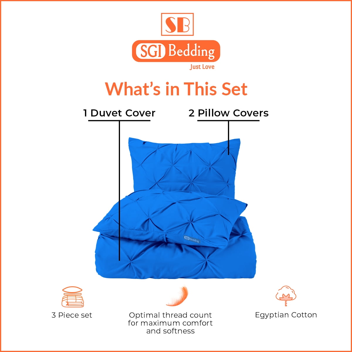 Sgi Bedding 100 Egyptian Cotton 3pc Pinch Duvet Cover Twin Egyptian Blue Walmart Com