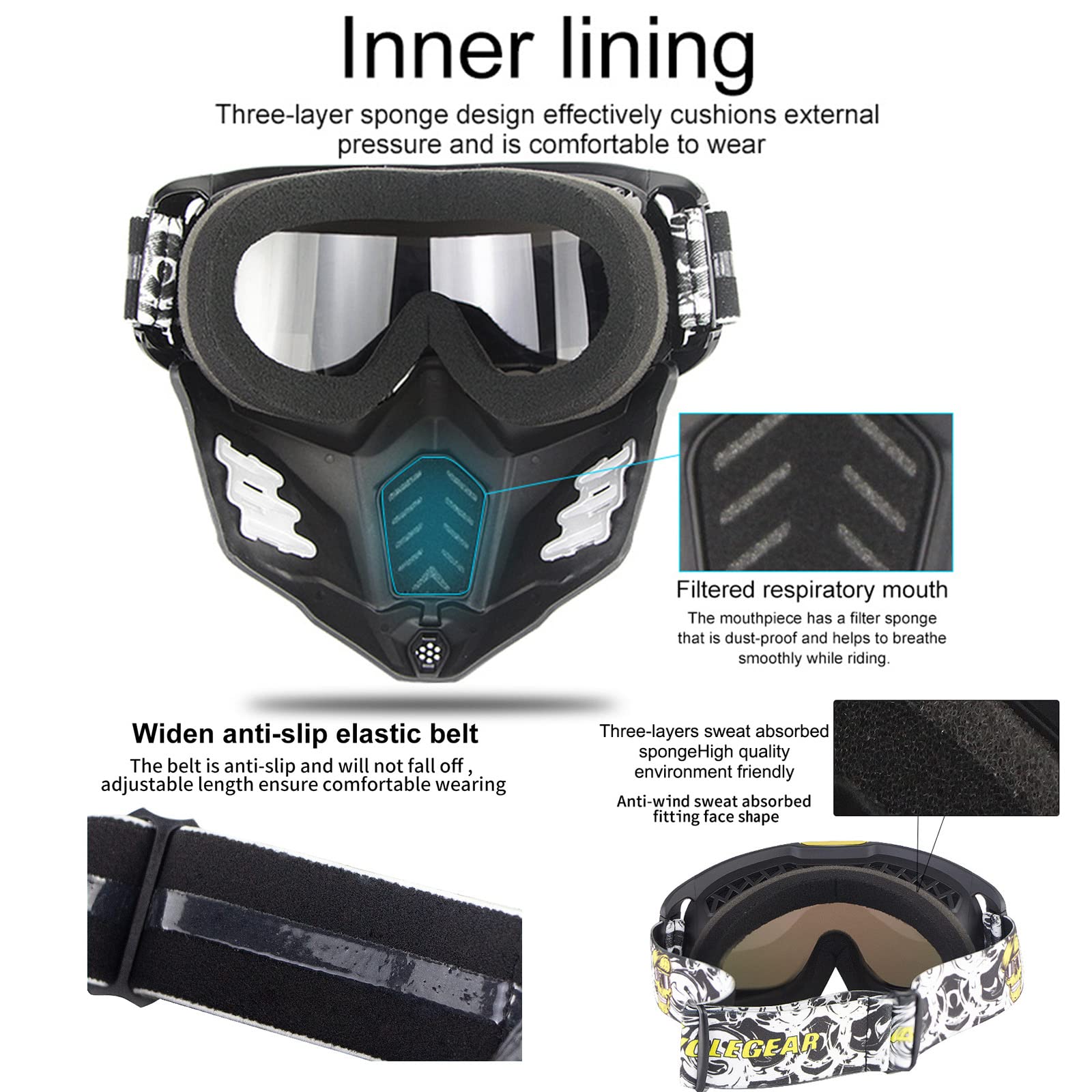 Motorcycle Goggles With Removable Face Mask Dirt Bike Atv Motocross Riding Goggles With Removable Vintage Face Cover Moped Helmet Accessories For Men And Women Bright Black Clear Lens Amazon De Automotive
